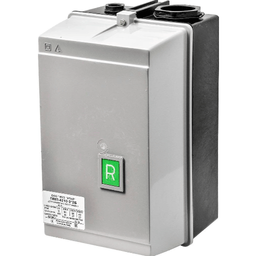 - Нересивний у корпусі із самозагасаючої пластмаси з вбудованим тепловим реле. Ступінь захисту становить IP54, струм керування ланцюга — змінний керування, з кнопкою — пуск-реле.