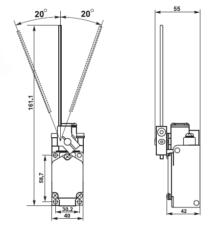 Виконання робочого елемента: 42 — важіль штировий, регульований за довжиною.