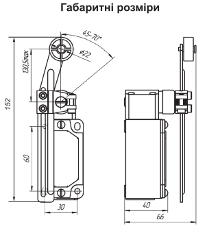 Виконання робочого елемента: 33 — бічний важіль, поворотний, регульований, з фіксацією в крайніх положеннях.